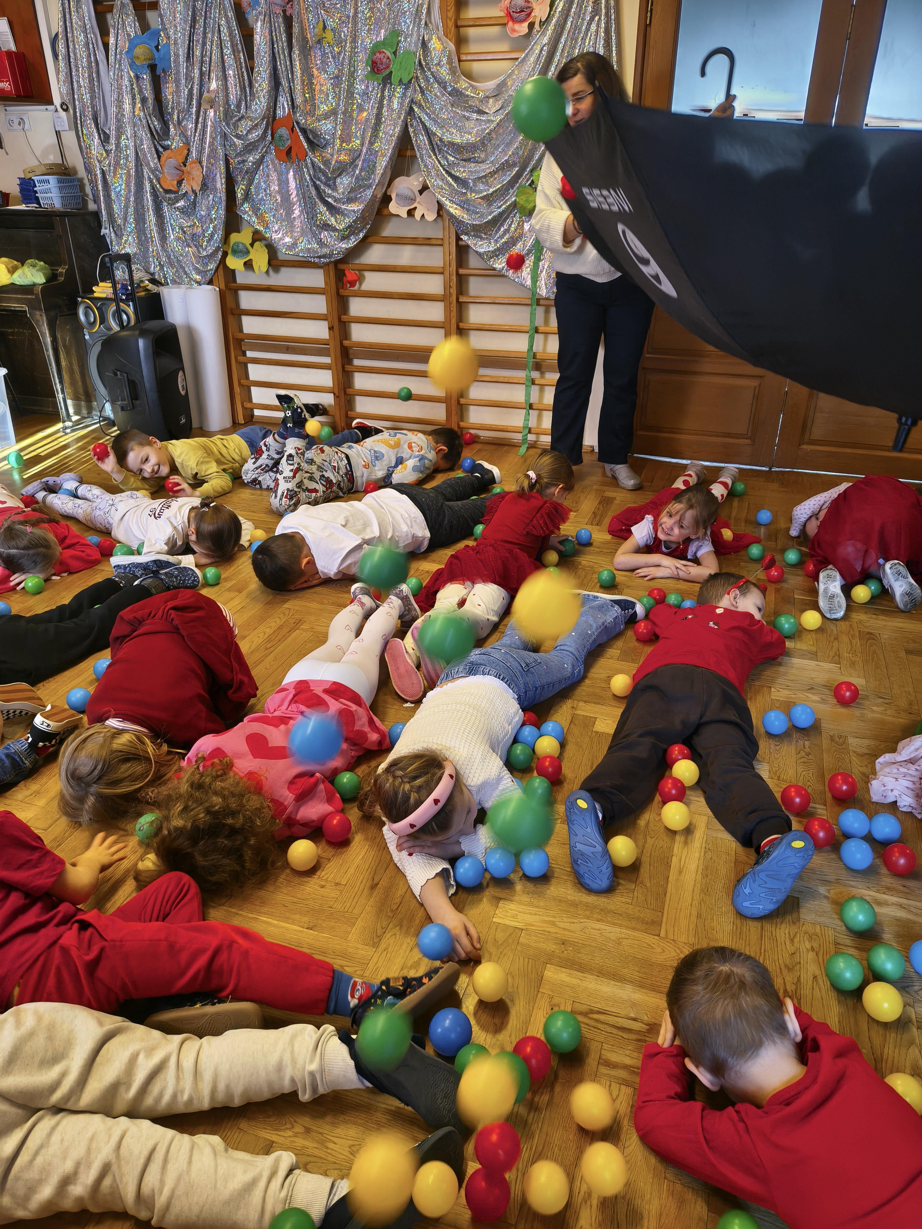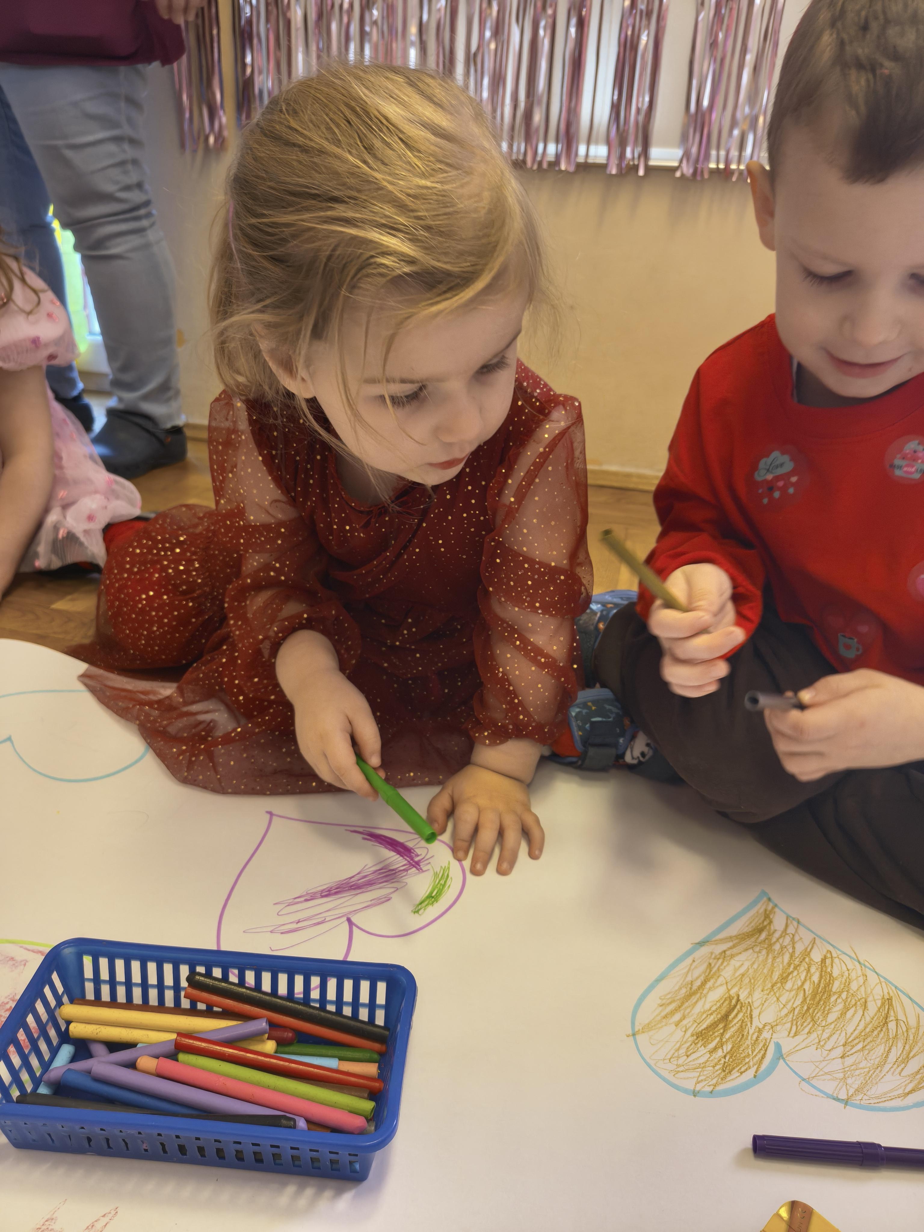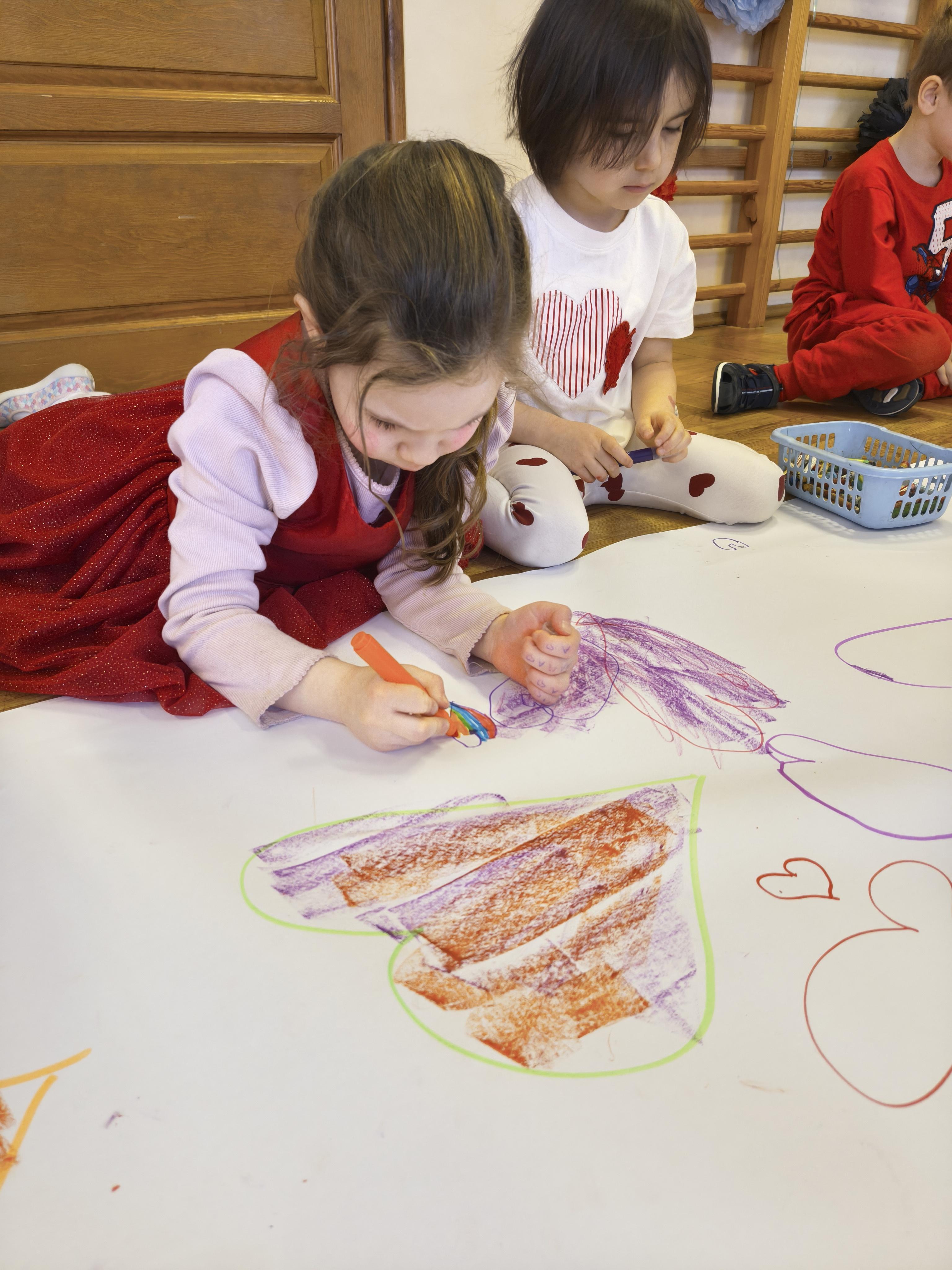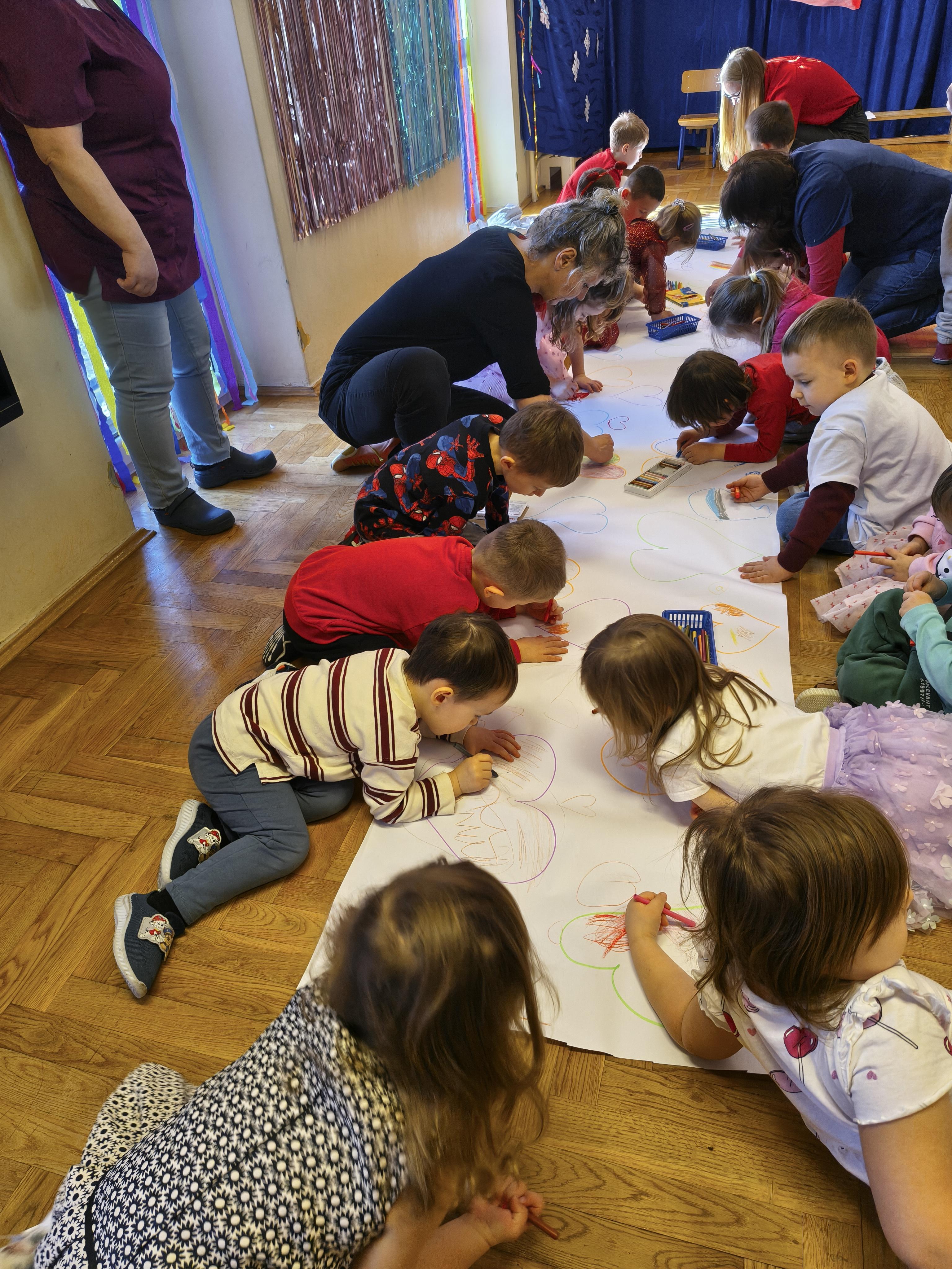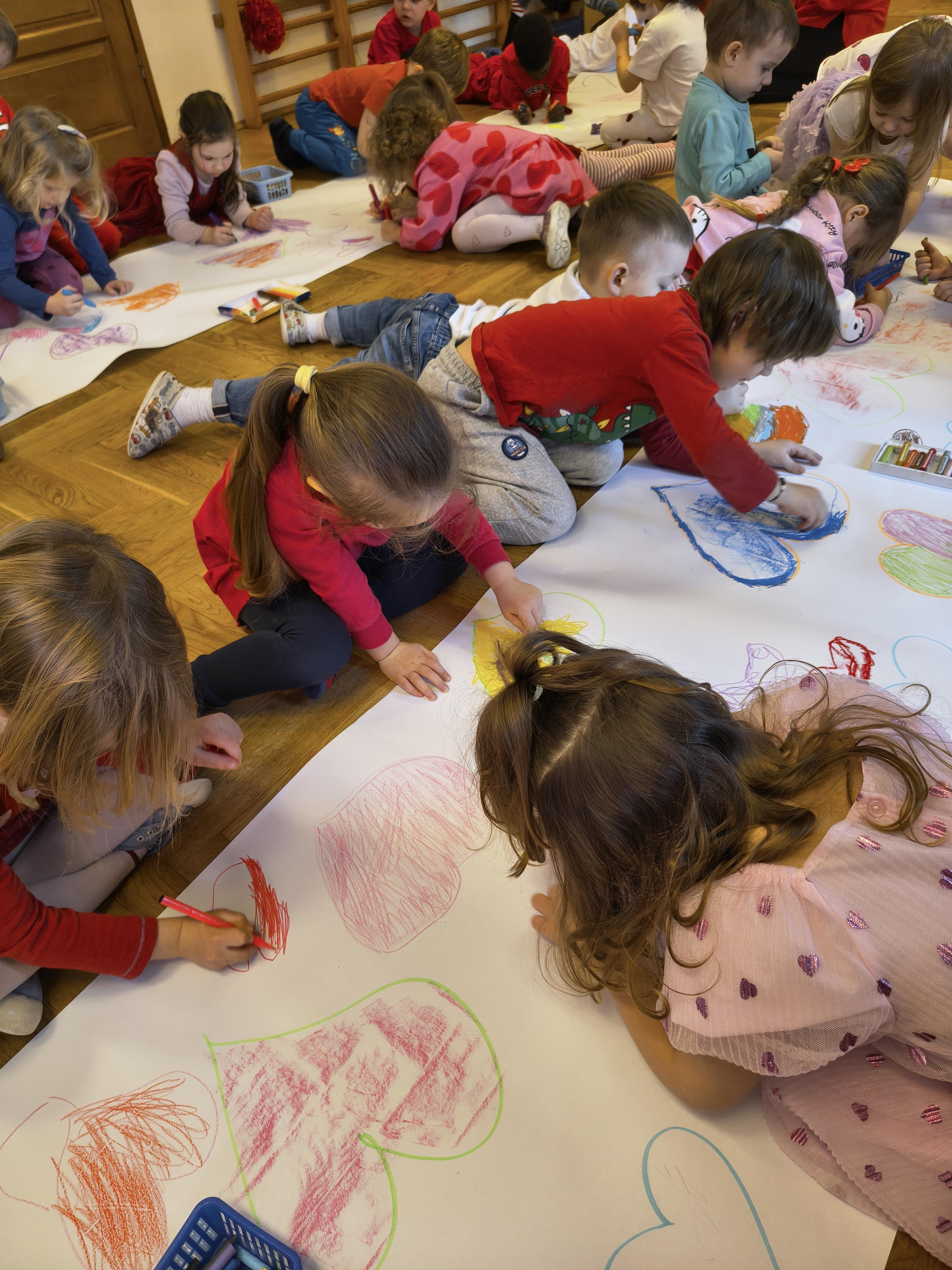 W poniedziałek 16 lutego dzieci spotkały się pięknie ubrane, w sali gimnastycznej, by wspólnie świętować. Walentynkowa zabawa była doskonałą okazją do budowania relacji, empatii i radości. Było wręczanie kartek z poczty walentynkowej, poszukiwanie przyjaciół, tańce z balonami, kolorowanie dywanu miłości, chusta animacyjna, Belgijka i losowanie imion przyszłych sympatii. Nie brakowało dobrej muzyki i uśmiechniętych buziaków!