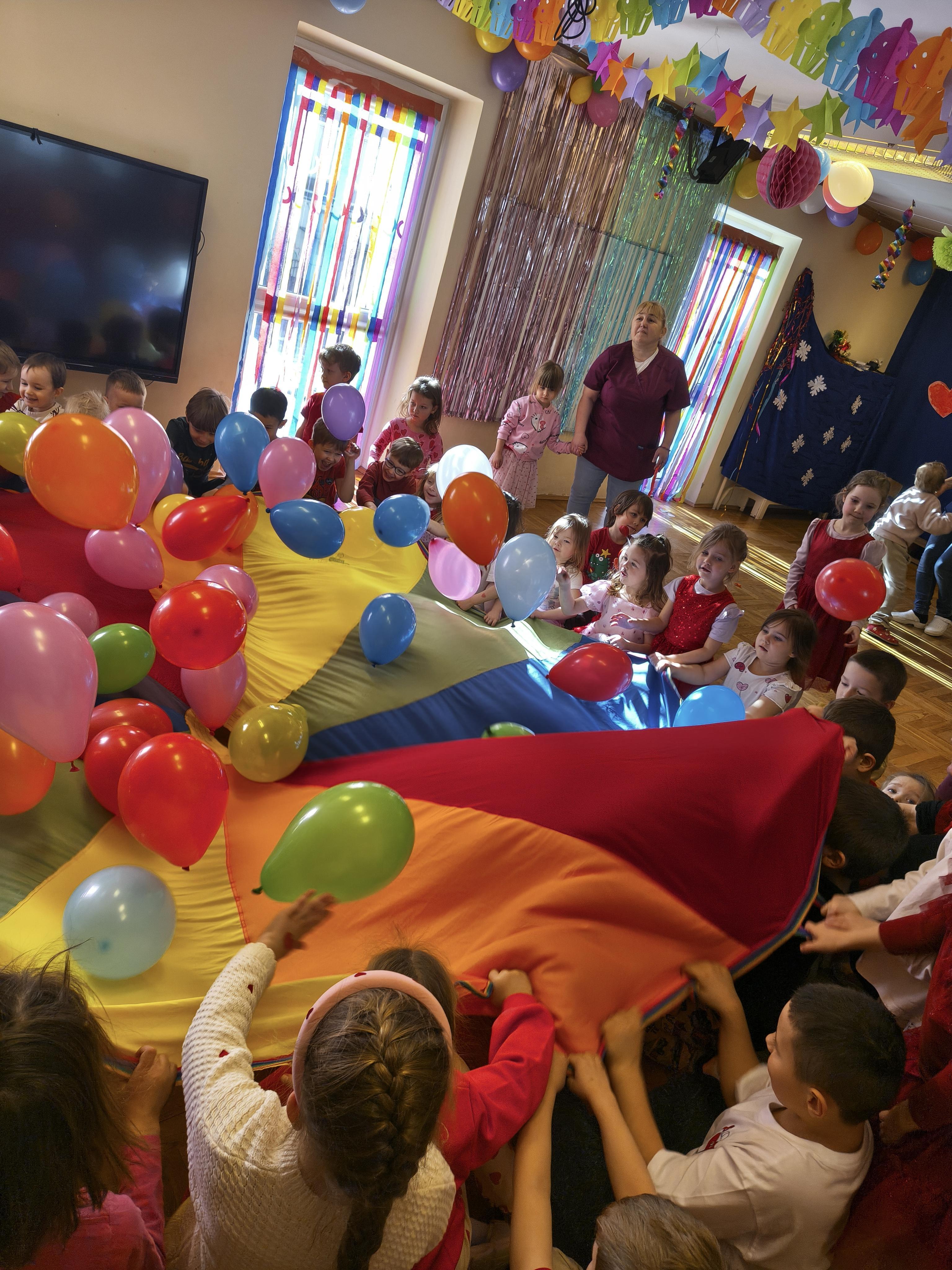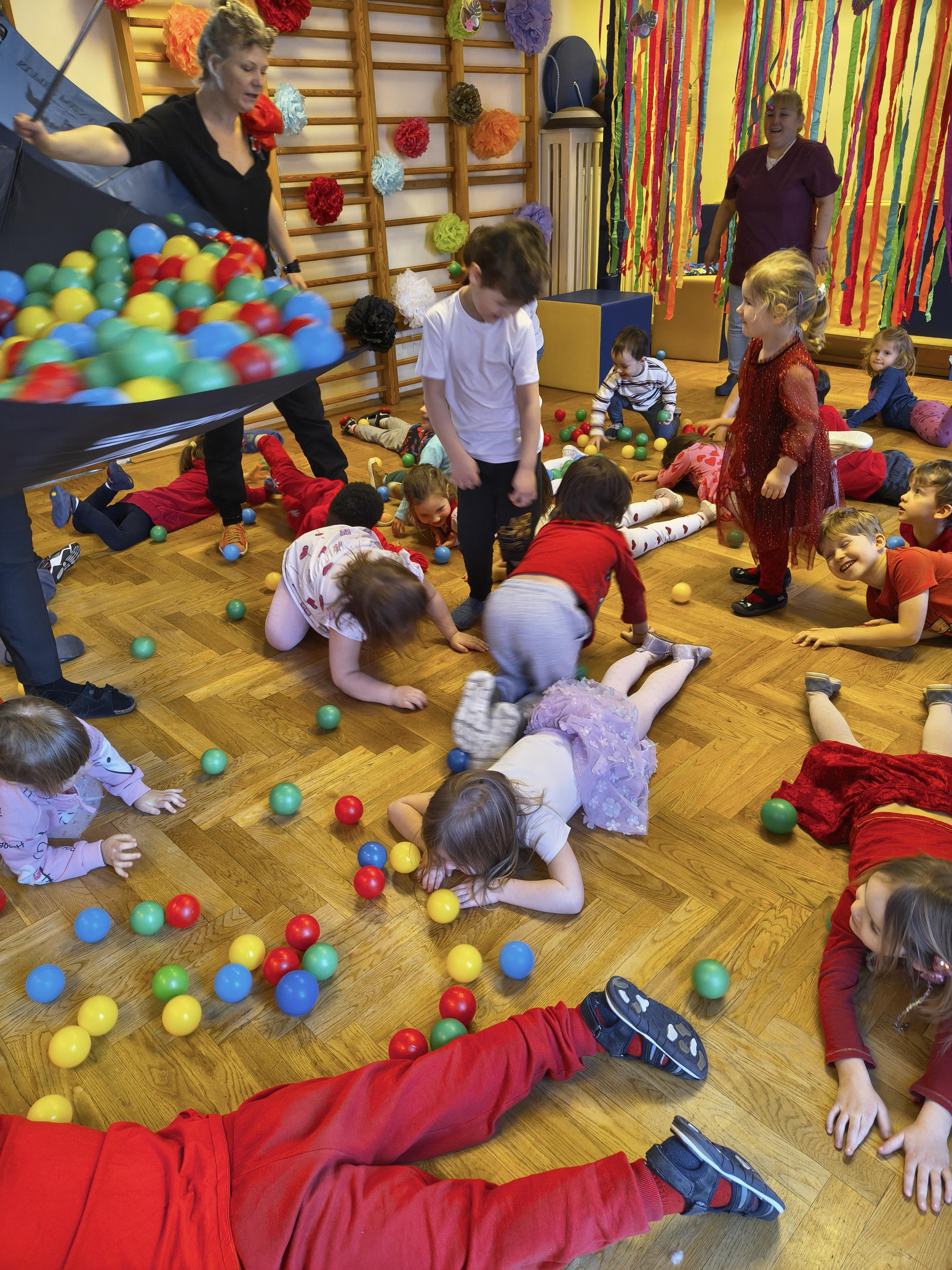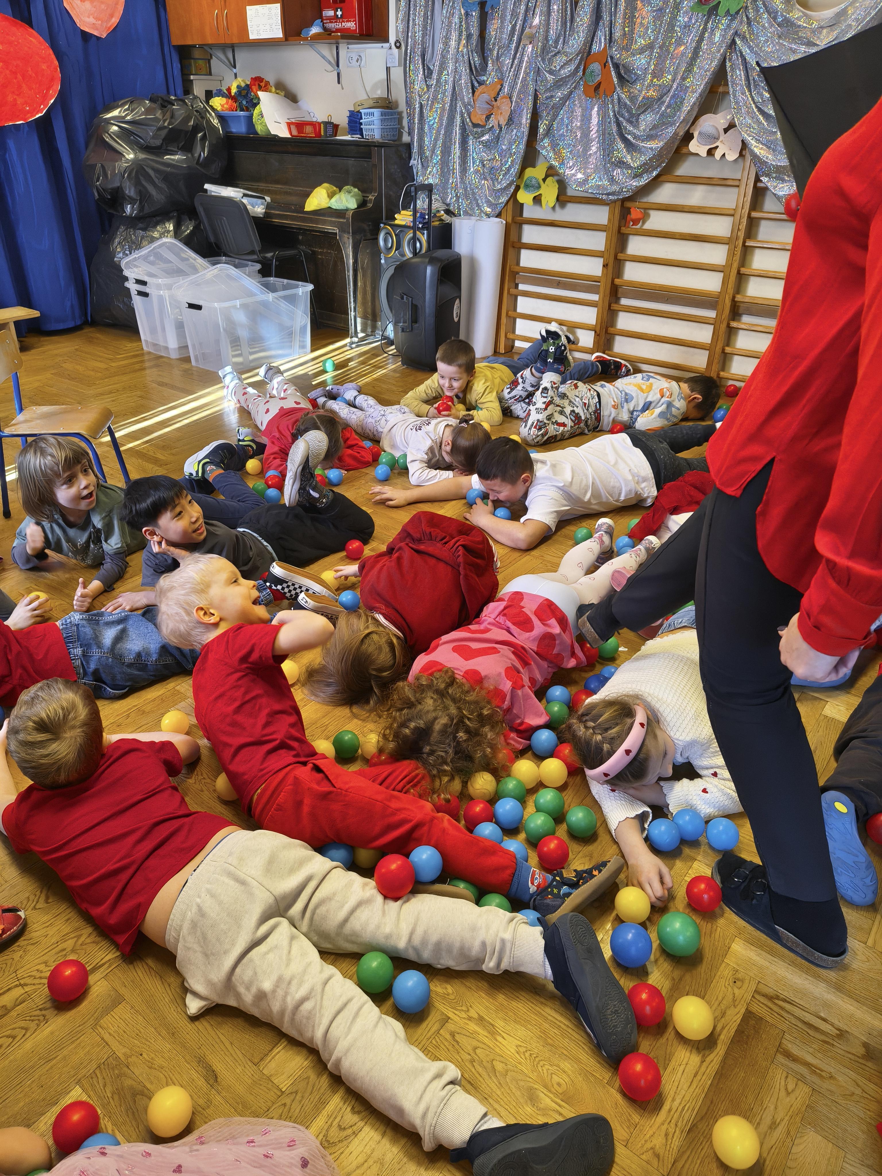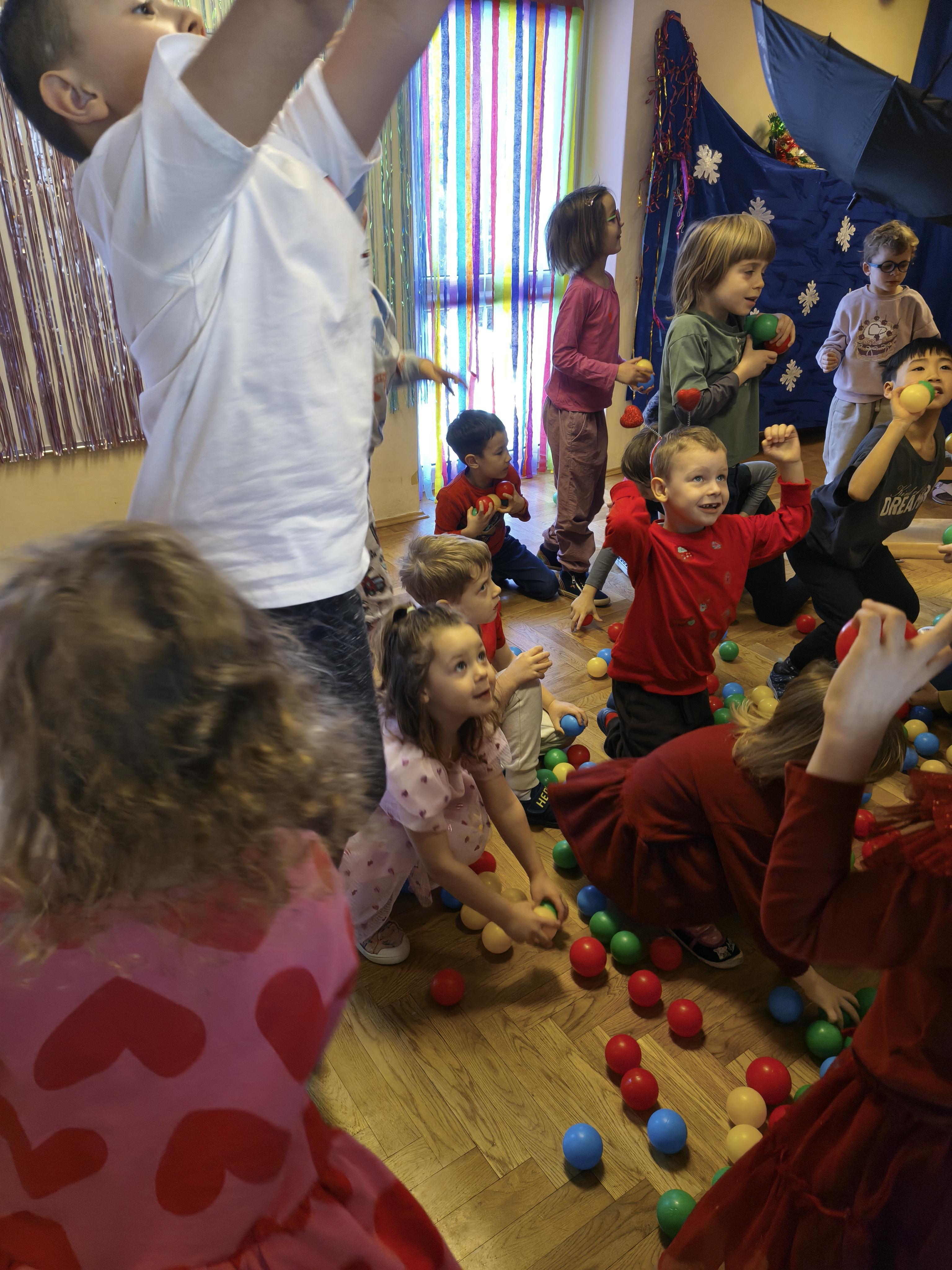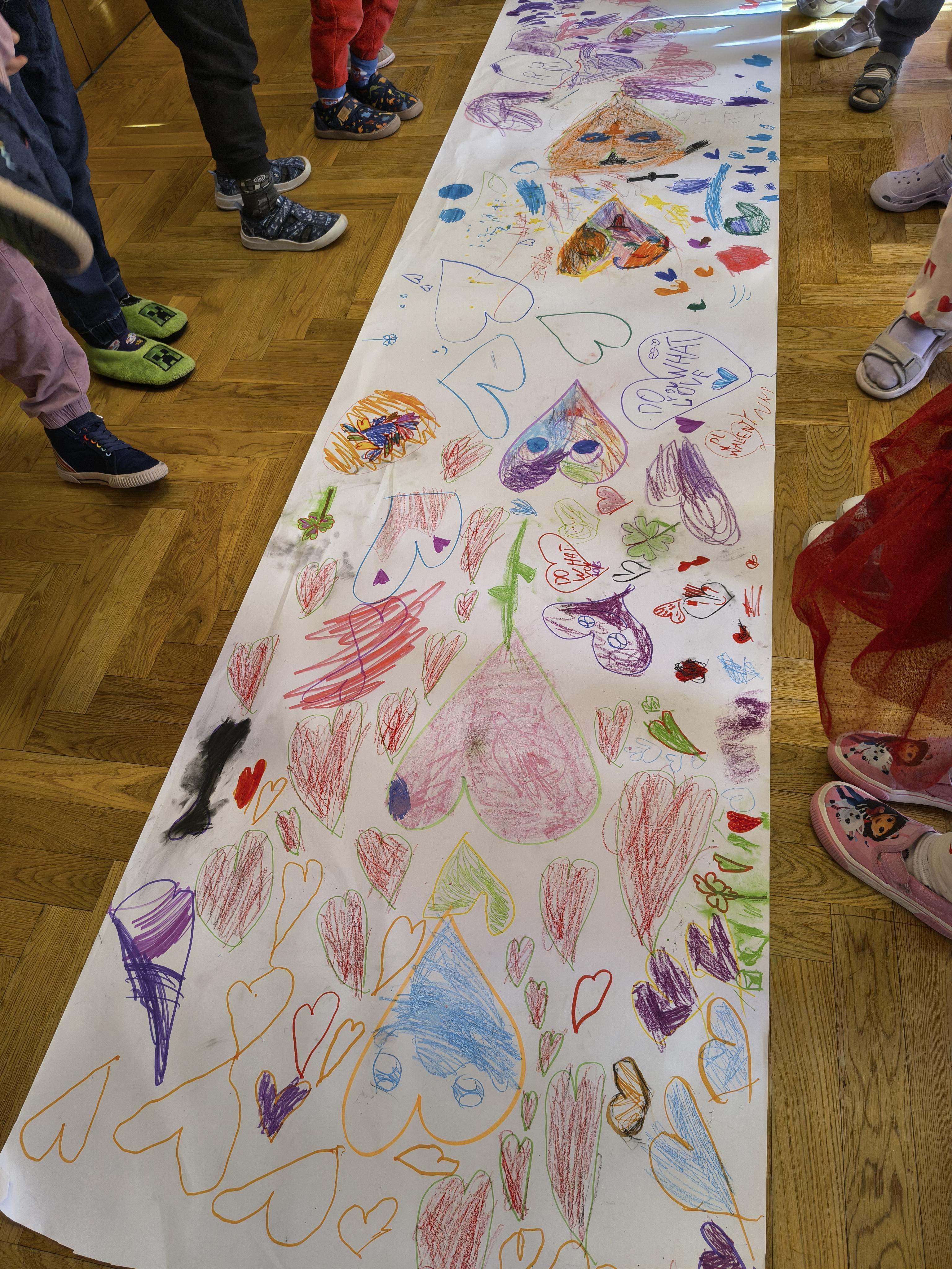 W poniedziałek 16 lutego dzieci spotkały się pięknie ubrane, w sali gimnastycznej, by wspólnie świętować. Walentynkowa zabawa była doskonałą okazją do budowania relacji, empatii i radości. Było wręczanie kartek z poczty walentynkowej, poszukiwanie przyjaciół, tańce z balonami, kolorowanie dywanu miłości, chusta animacyjna, Belgijka i losowanie imion przyszłych sympatii. Nie brakowało dobrej muzyki i uśmiechniętych buziaków!