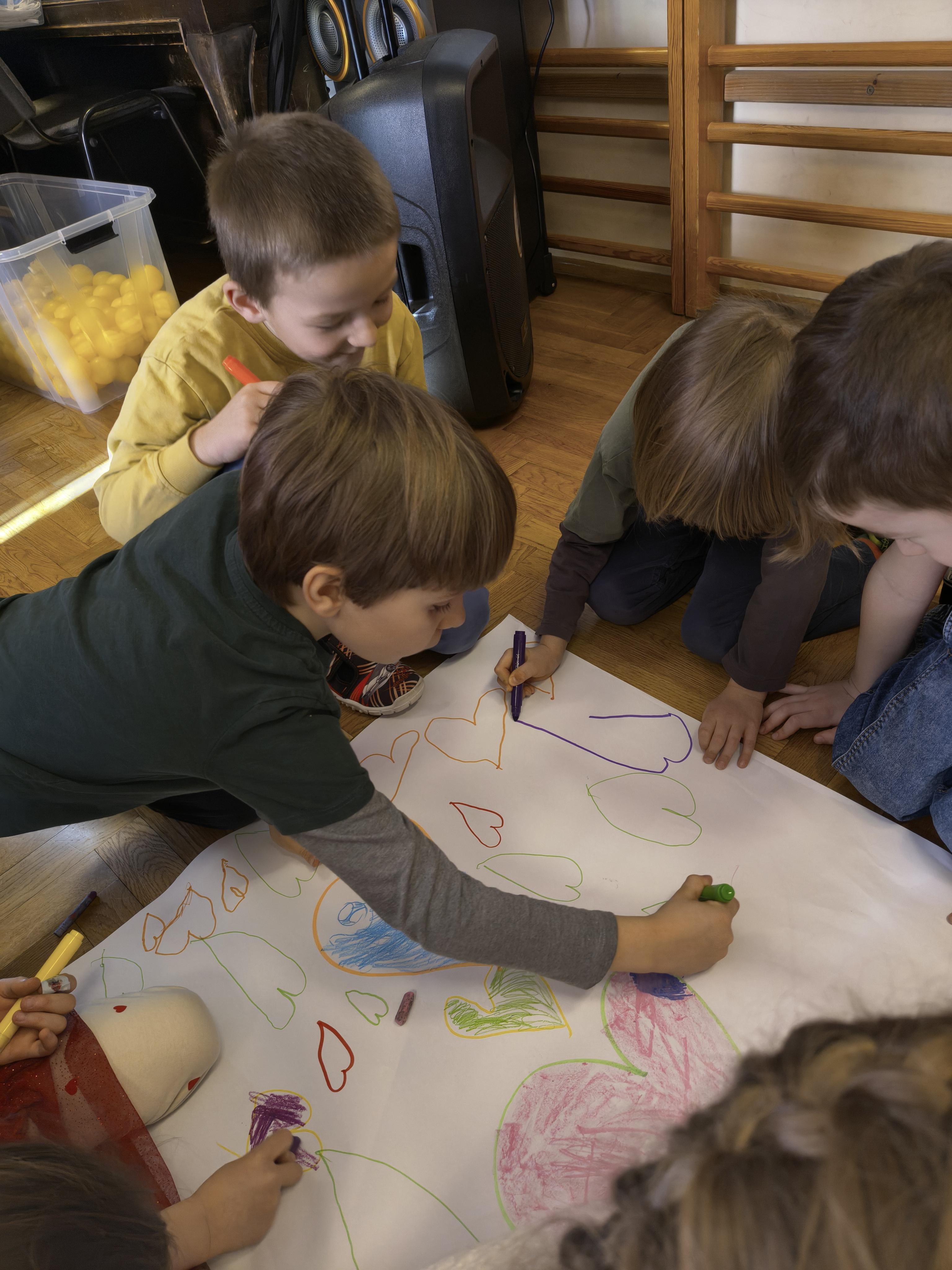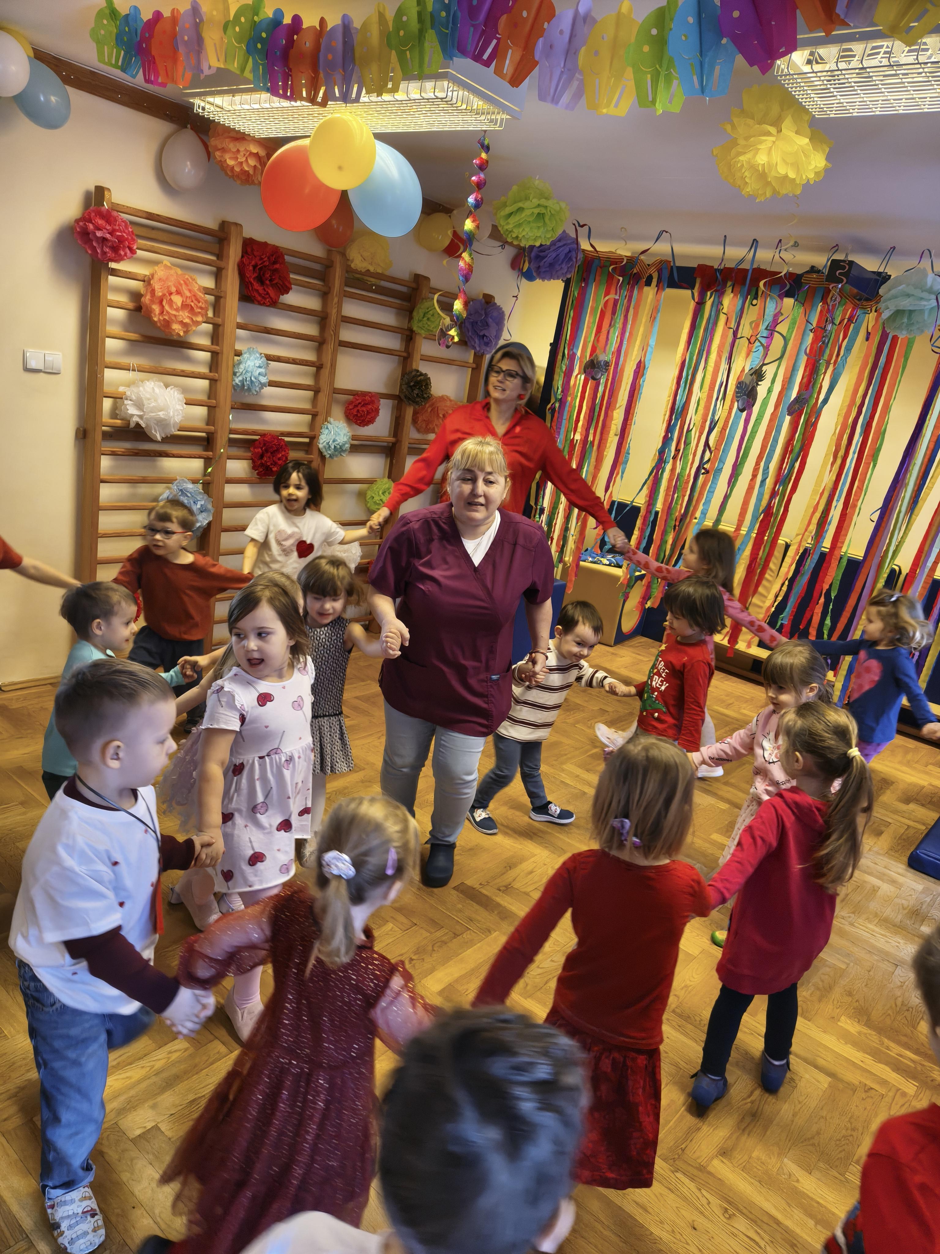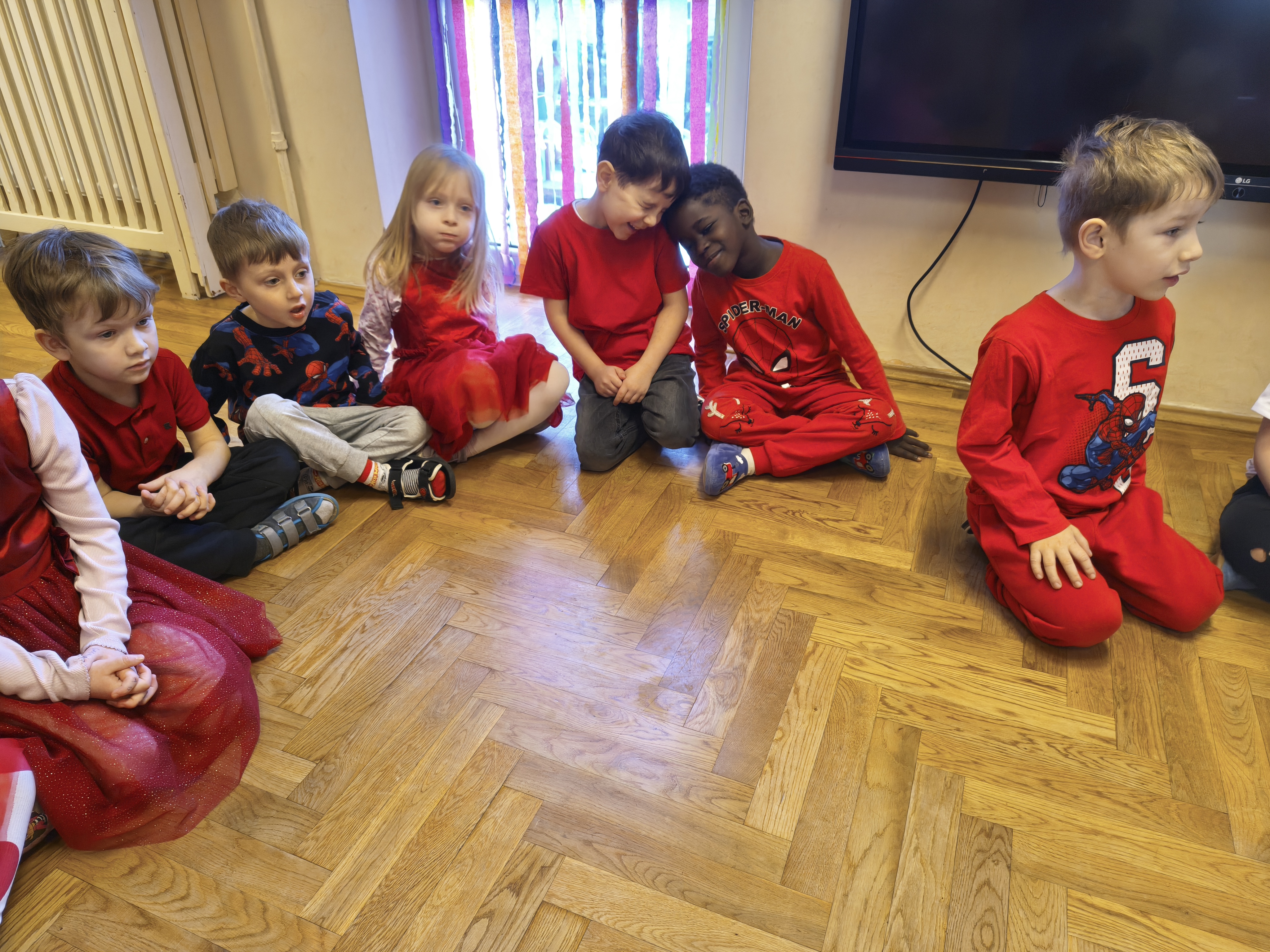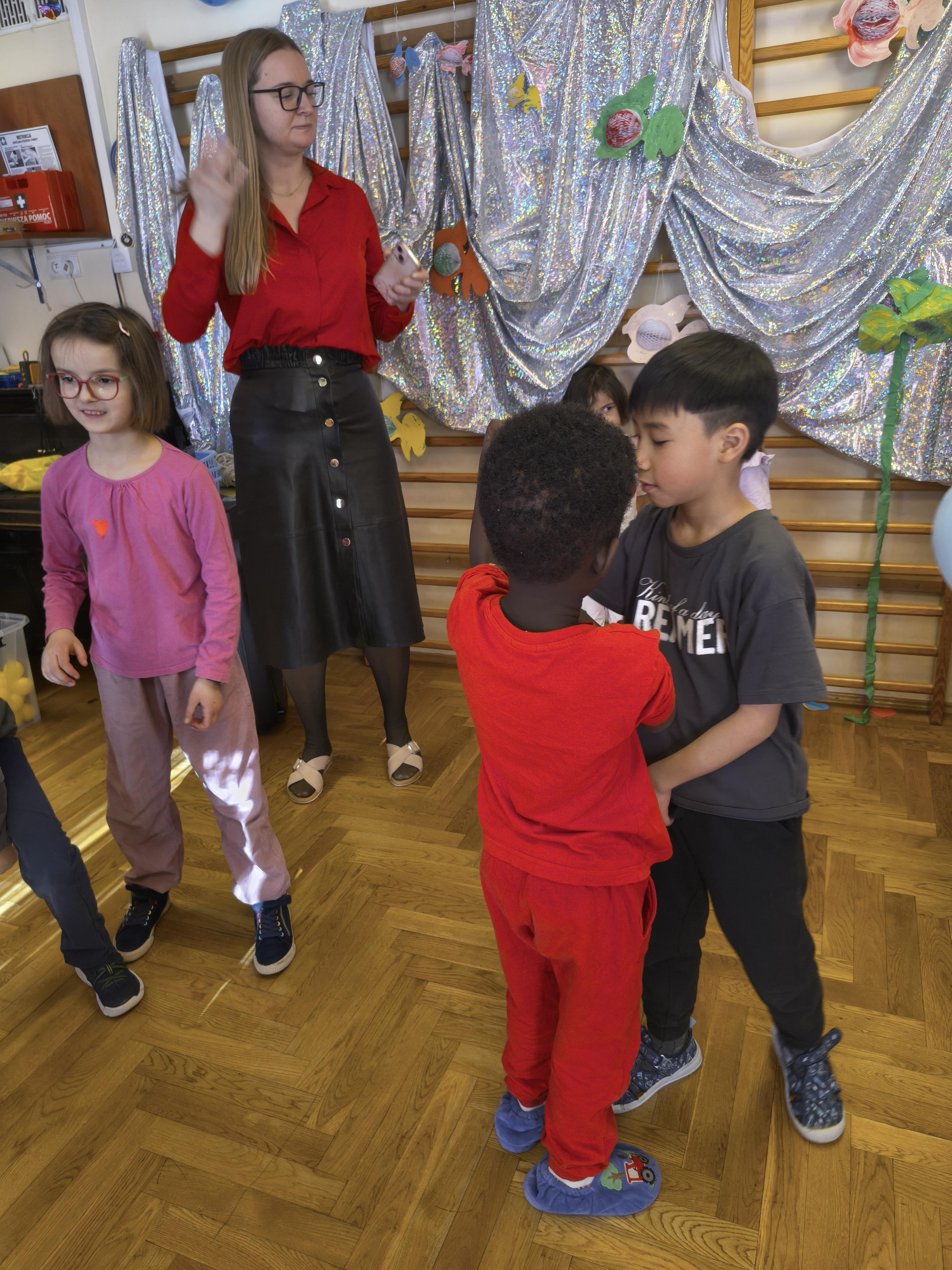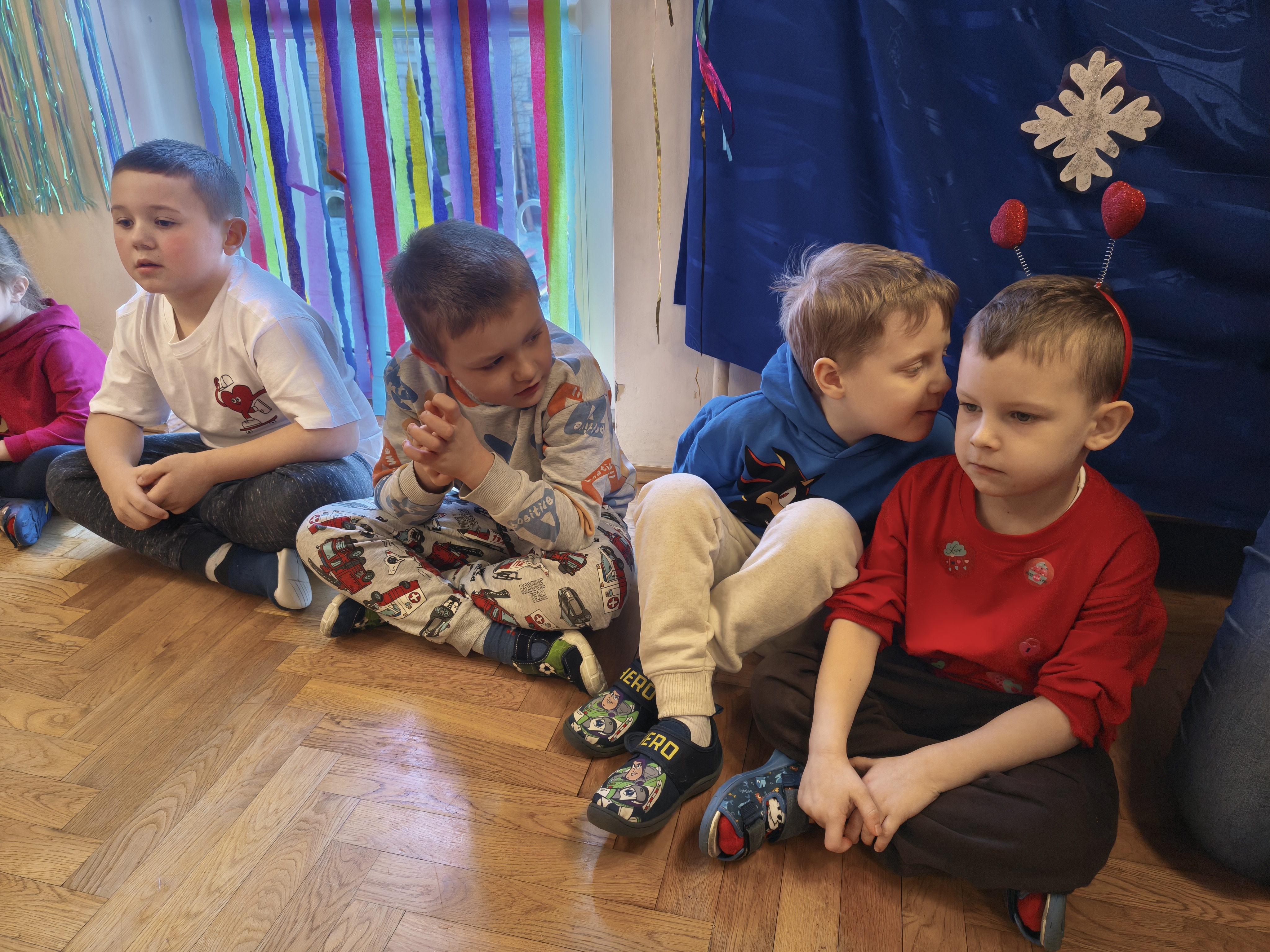 W poniedziałek 16 lutego dzieci spotkały się pięknie ubrane, w sali gimnastycznej, by wspólnie świętować. Walentynkowa zabawa była doskonałą okazją do budowania relacji, empatii i radości. Było wręczanie kartek z poczty walentynkowej, poszukiwanie przyjaciół, tańce z balonami, kolorowanie dywanu miłości, chusta animacyjna, Belgijka i losowanie imion przyszłych sympatii. Nie brakowało dobrej muzyki i uśmiechniętych buziaków!