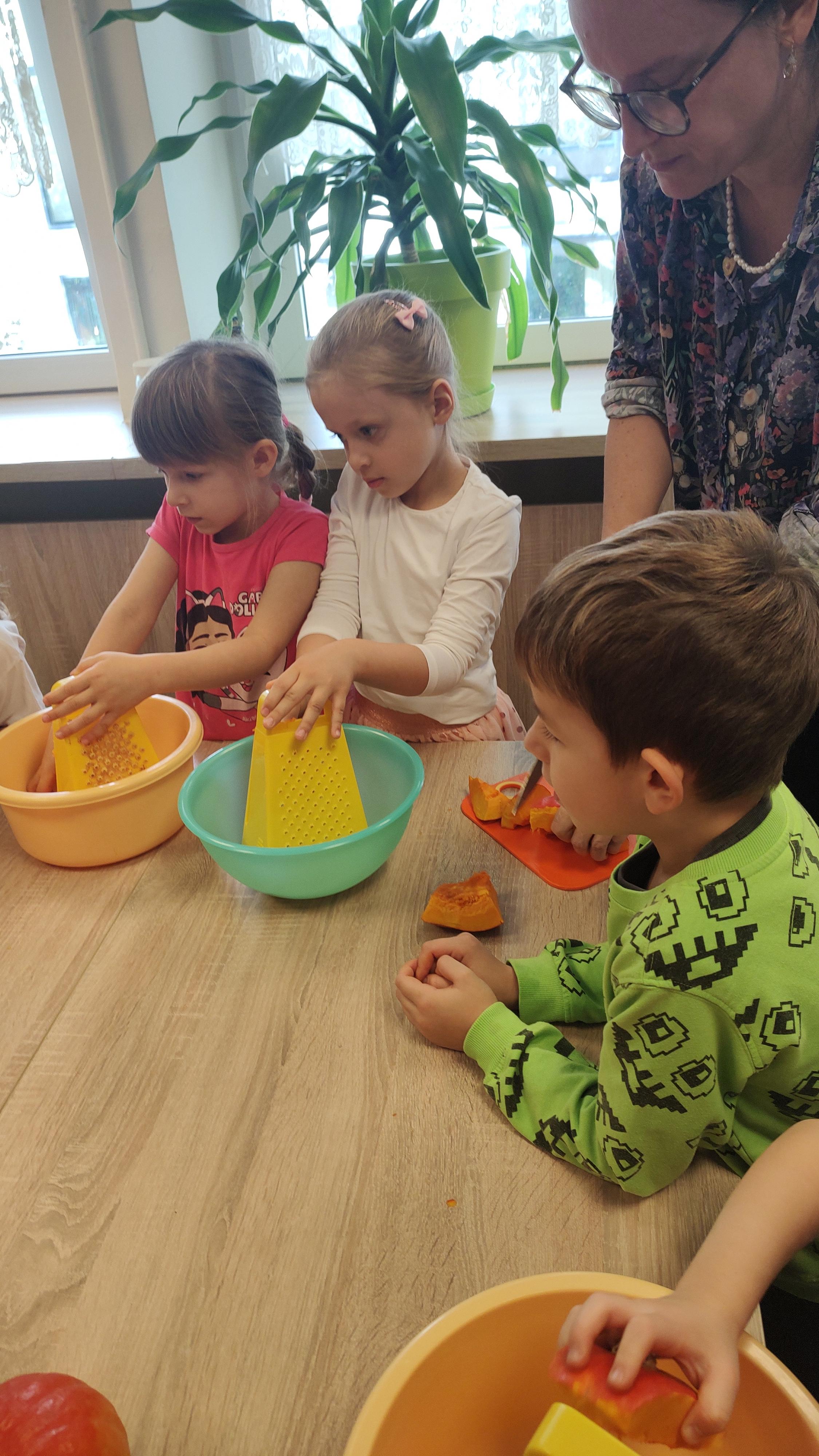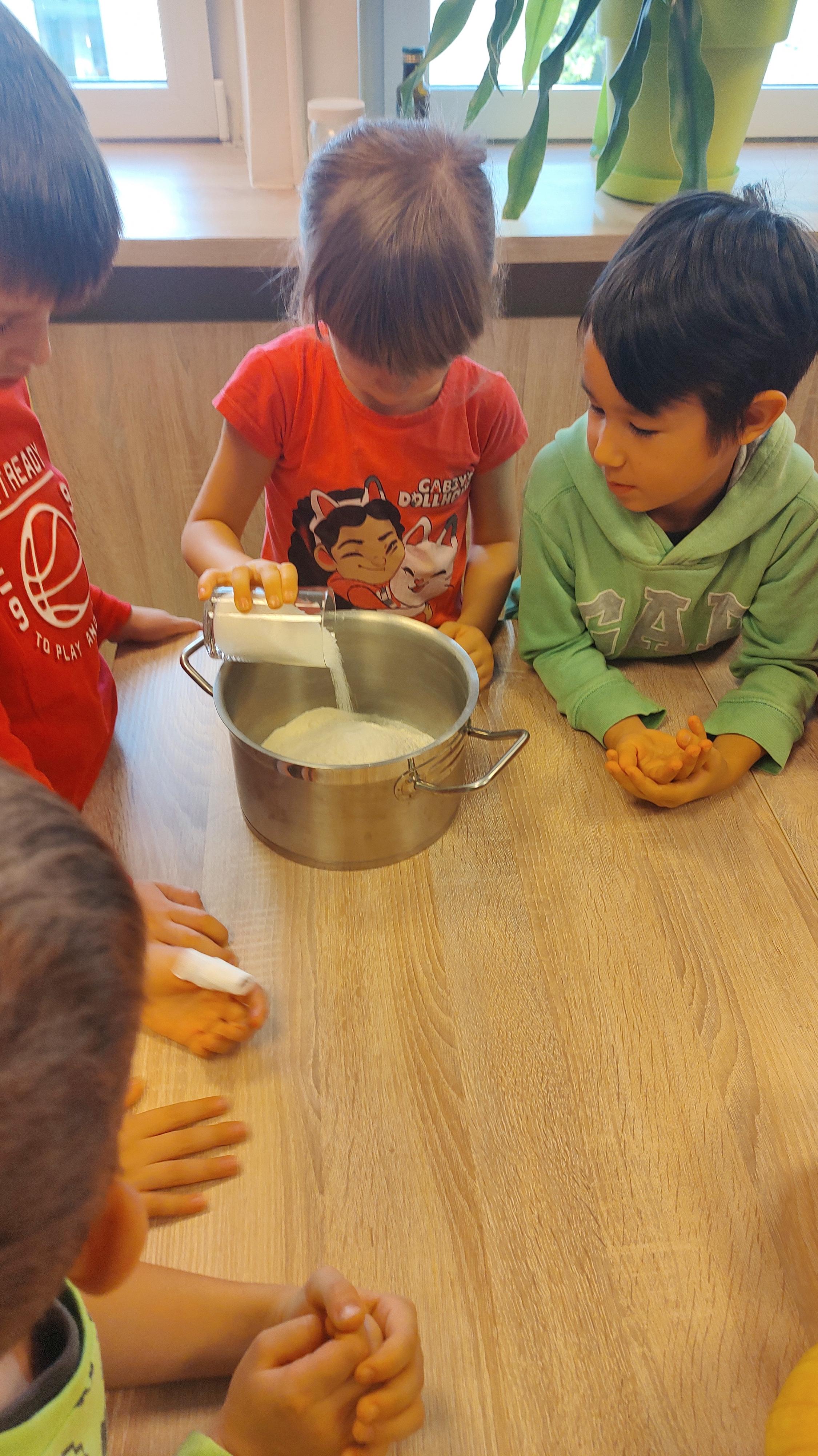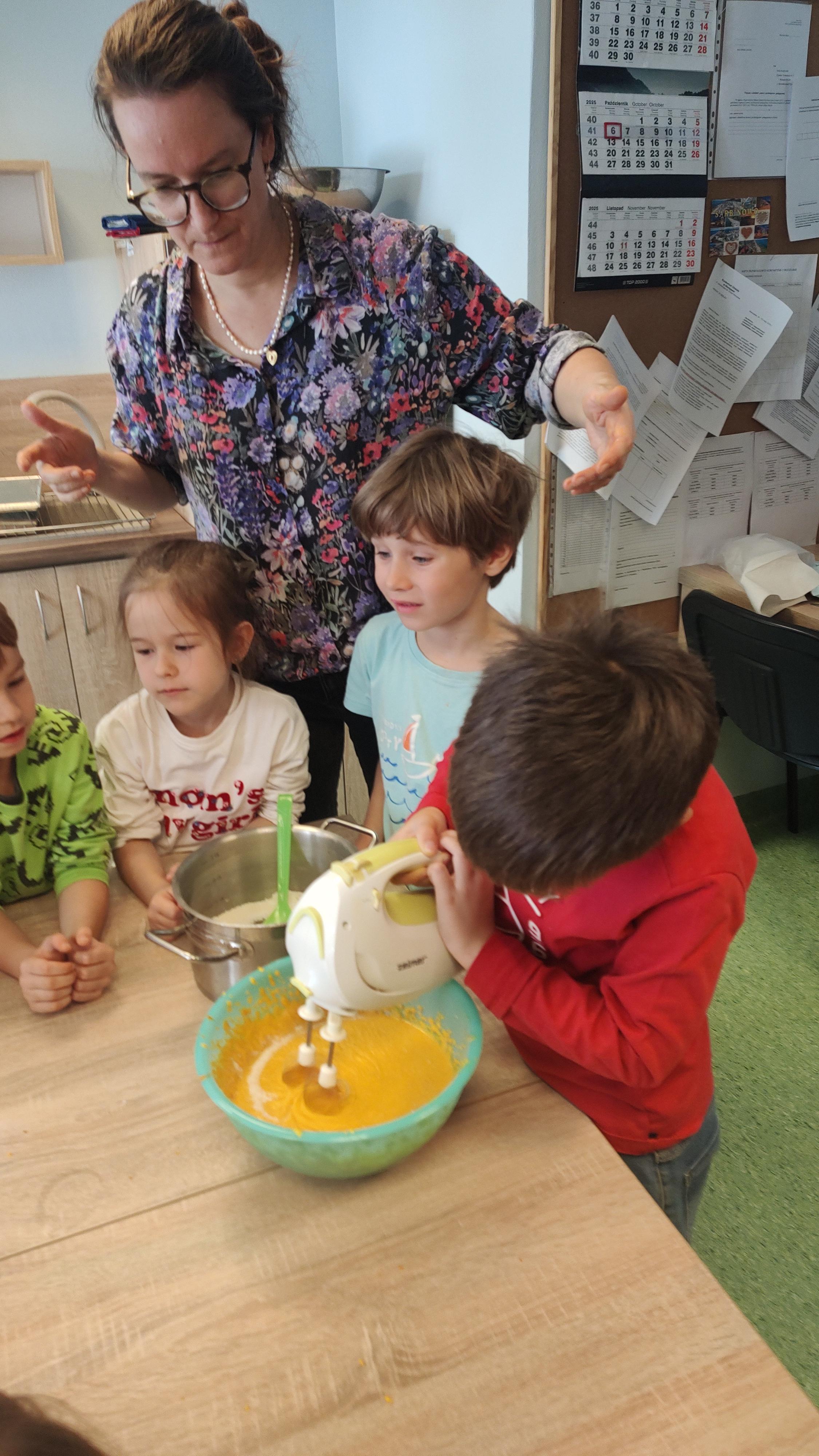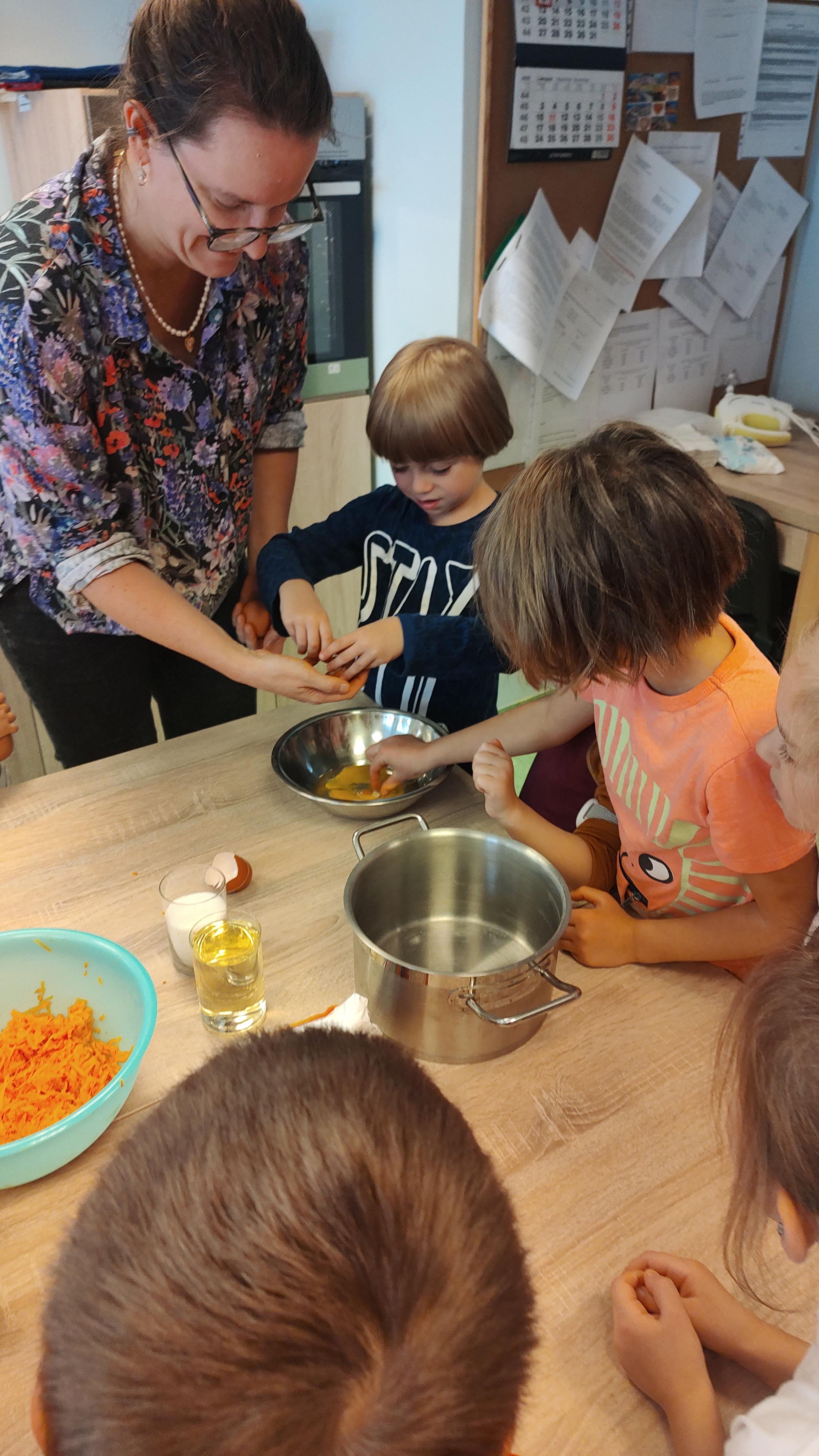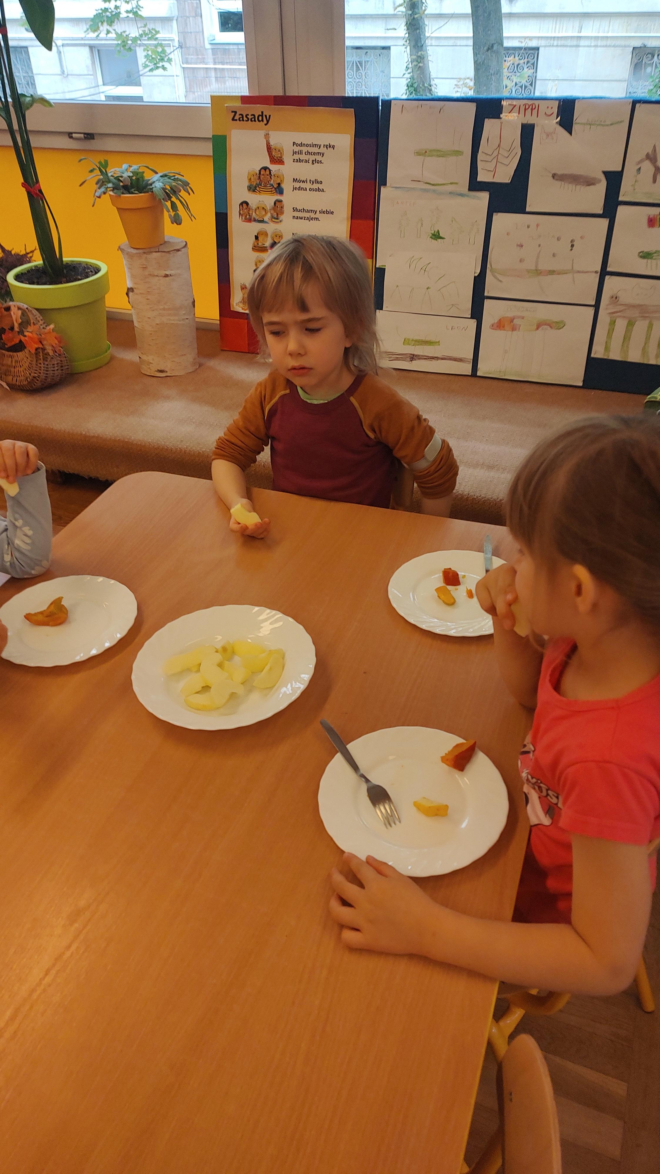 W poniedziałek 6.10.25 dzieci wspólnie z Panią Małgosią przygotowały i upiekły- dynię i ciasto dyniowe. Robota szła doskonale- było krojenie, ścieranie, mieszanie, miksowanie. Nie obyło się bez "pierwszej pomocy"! Niektóre palce ucierpiały podczas działeń! Ale było warto! Zjedliśmy dynię z przyprawami - sól, czosnek i chili i słodkie, wilgotne ciasto!