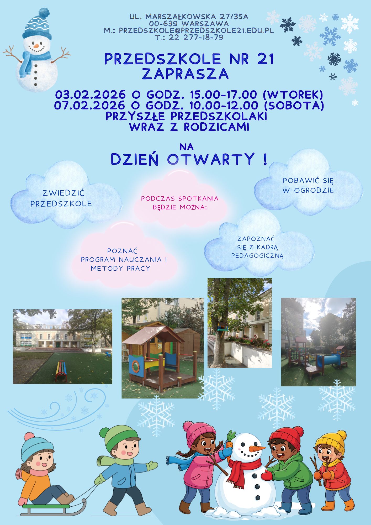 Zaplanowane dni otwarte w naszej placówce to 20 styczeń ( godz. 9.30 - 14)